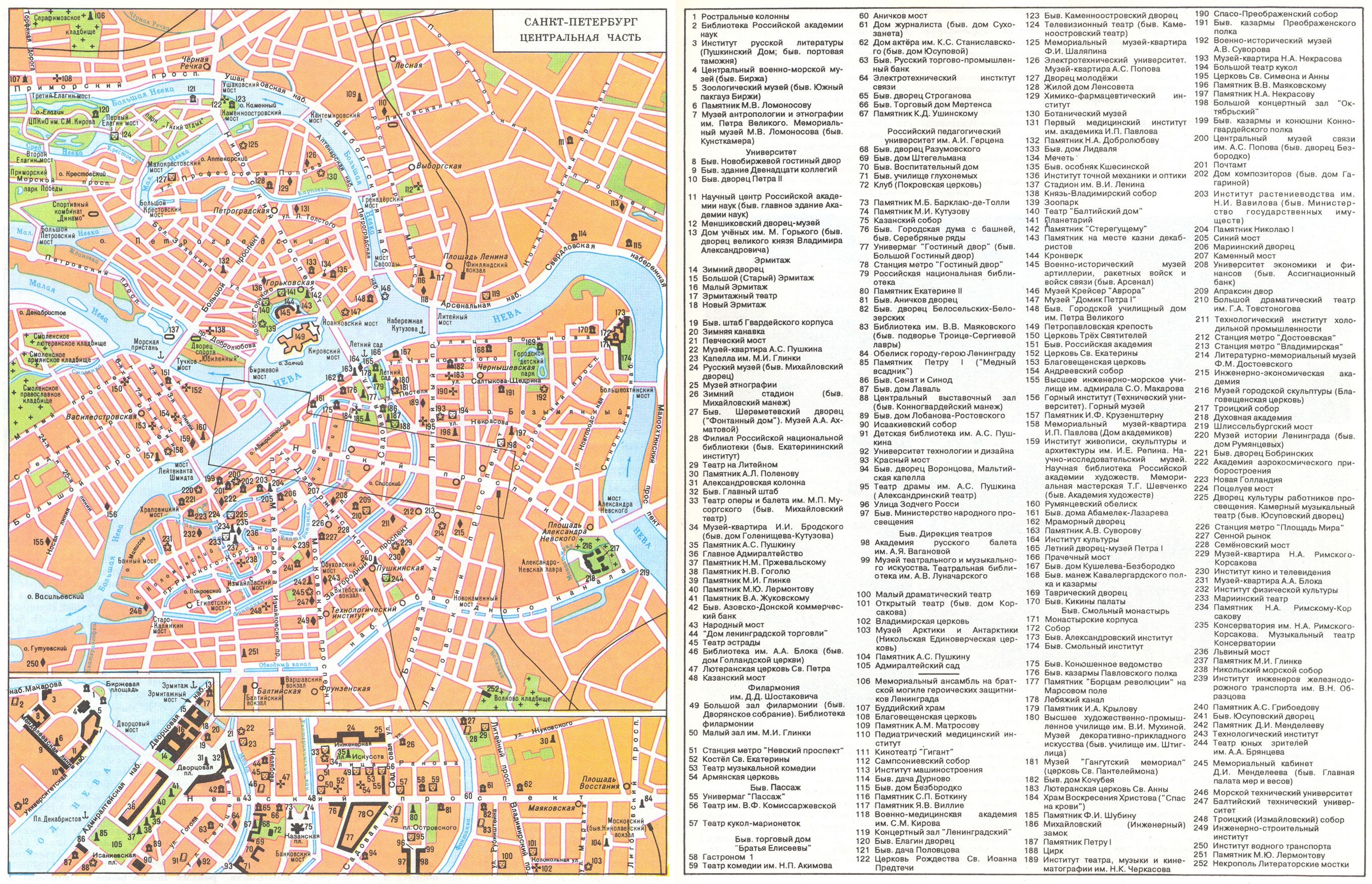 Выбрать маршрут для экскурсии можно с помощью туристических карт большой и центра города с достопримечательностями Санкт-Петербурга.